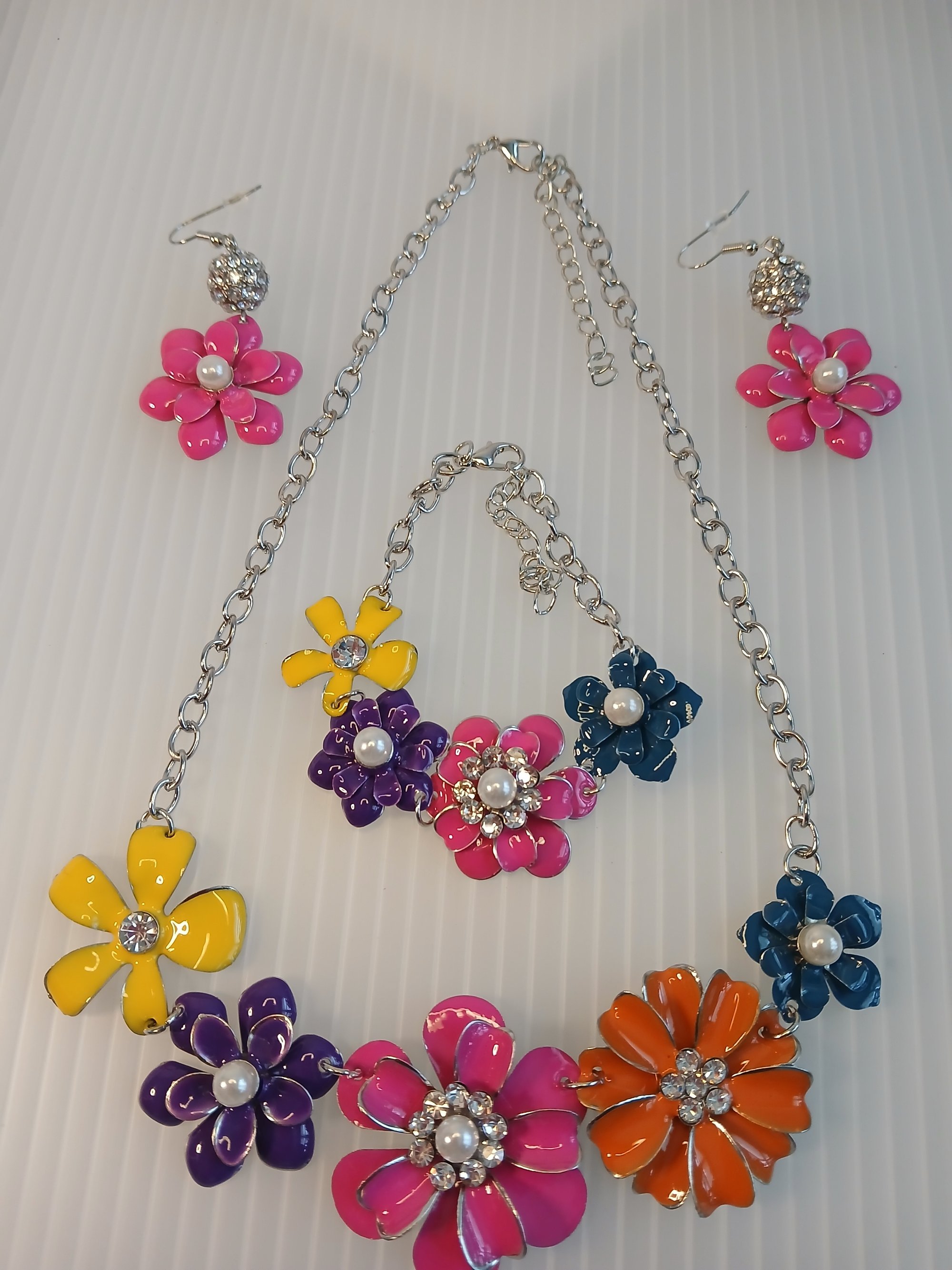 Flower Power Enamel Necklace Bracelet Earrings Set