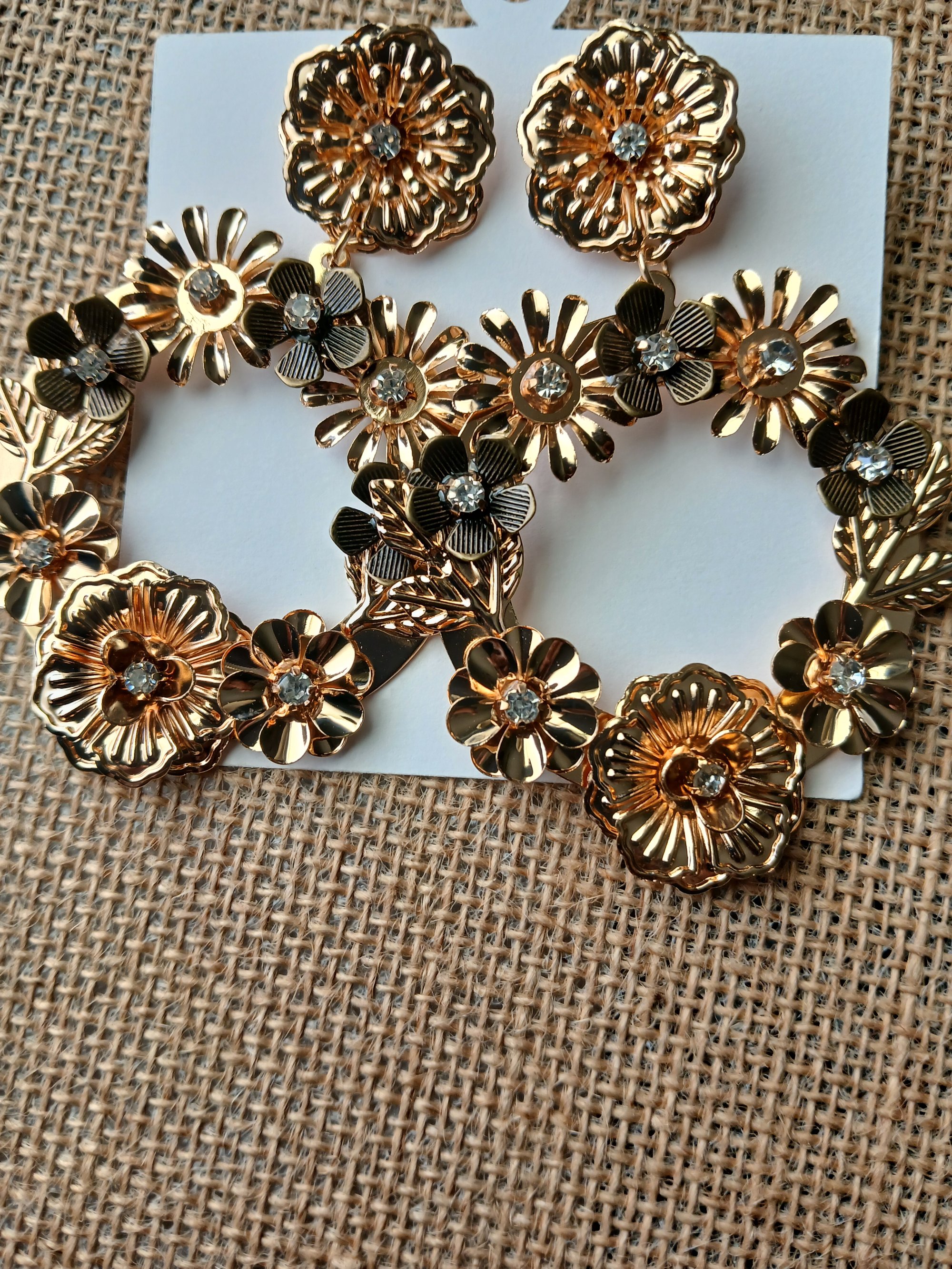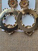 Bold beautiful unique. These metal intricately shaped flower earrings are fabulous in design and craftsmanship. A fashion statement for sure can be worn on any fancy occassion. A dinner date special party or wedding. Metal is goldtone mixed with rose goldtone materials.